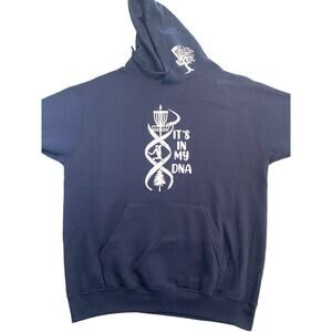 Disc Golf DNA Custom Vinyl Logo Pullover Hoodie Size L Sweatshirt Navy Blue
