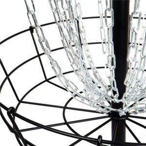 🧿24 HEAVY DUTY CHAINS - this disc golf basket has 24 equidistantly oriented, course-weighted chains for better catches during your disc golf practice sessions, while the all-metal construction and large base improve overall stability and sturdiness. Additionally, 3 optional ground stakes are included to prevent your disc golf basket from tipping over from wind or exceptionally strong putts.