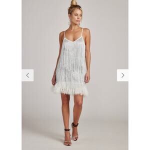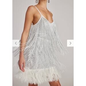 Turn up the jukebox and get ready to groove in the Disco Fever Silver Fringe Mini Dress. An eye catching style designed with silver sequins, metallic fringe, and faux feathers... what more can you need, the Disco Fever Mini has it all.