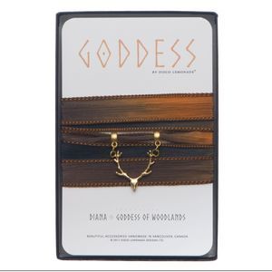 Diana was the Roman Goddess of the hunt and the wild woodlands. She had a special connection to animals and could speak to them. She was especially fond of deer. Diana's nature is embodied in our earthly colored silk ribbon and adorned with an elegant stag charm in a modern matte finish.