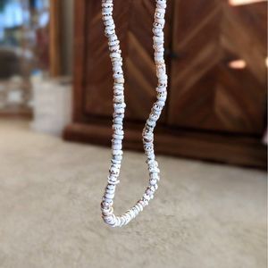 An extra smooth authentic vintage puka shell necklace. This one in particular is very unique with its tiger's eye coloring throughout.