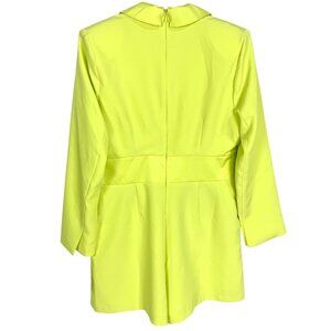 Disco Neon Lime Yellow NY&C Double-Breasted Blazer Romper Pleated Waist Size L