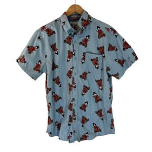 Disco Panda Mens Button Up Shirt Size Large Japanese Geisha Patterned Pocket Top