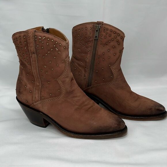 Discontinued Lucchese Brown Suede Ankle Zip Up Cowboy Boots with Studs