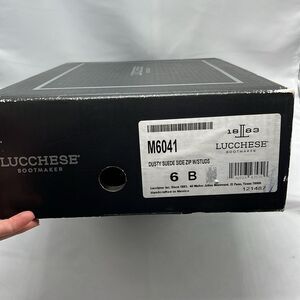 These discontinued Lucchese brown suede ankle zip up cowboy boots with studs are in great condition. They have been worn, but still come in the original box. The listing says the brand is Ariat, depop didn't have "Lucchese" as a brand option so I picked something close.
