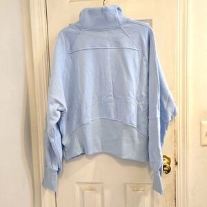 Warm, soft, and comfortable. 2XL measures 23" length and 58" bust. Front Kangaroo pockets and hood. 50% cotton, 50% polyester. Pretty sky blue color. New with tags.
