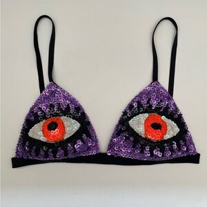 Discount Universe Eye Bra Top purple RARE rave festival bikini sequined EDC Sz S