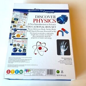 Explore science with the Discover Physics box set. Includes reference book, sticker book, wall chart, and car kit. Perfect for young learners.