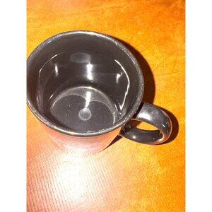 This black ceramic mug showcases "Discover Stars" text and printed signatures with 1999 Smucker's branding. Functional and collectible.
