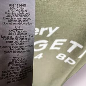 Shirt is a nice natural green color and is a 60/40 Cotton/Poly blend - and is a men's size small