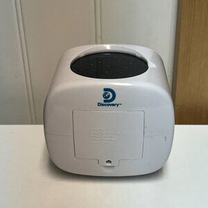 Discovery Projection Alarm Clock & Sound Machine Pre-owned in excellent working condition (batteries not included). Minor wear - please see pictures. Wake up to your favorite tunes with this Discovery Projection Alarm Clock & Sound Machine. The clock is powered by a quartz battery and features a digital display. The white and blue color combination gives it a modern and stylish look that will complement any bedroom decor. This alarm clock is made of durable plastic and features a projection function that displays the time. It is perfect for anyone who loves the moon and stars theme. With its alarm feature, you can be sure that you will wake up on time. This clock is a great addition to any bedroom and is sure to make your mornings a little more pleasant.