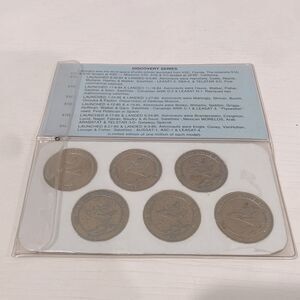 This set contains six antiqued solid bronze coins, each approximately 1.5 inches in diameter, commemorating the Discovery Series of Space Shuttle exploration missions.