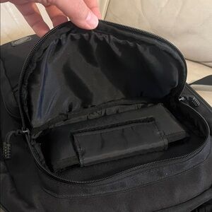 This sleek black backpack is perfect for everyday use, offering both style and functionality.