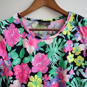 Pretty and comfy floral top. Made in USA. Large size. Discreet brand.