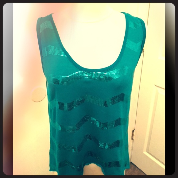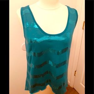 This shimmer Discreet preowned tank top has a sheer back sleeveless size M