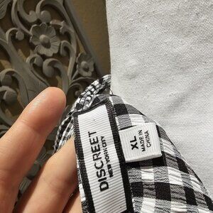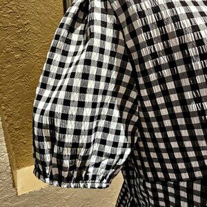 Discreet XL Gingham Tie-Front Peplum Top Puff Sleeves Boho Y2K Baby Doll Flowy