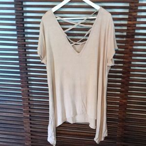 Super soft top with shark bite hem. Open weave detail in back. Shows a little pilling. 💥Offers welcome💥