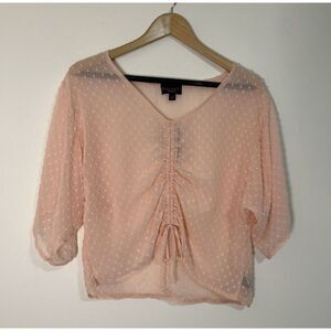 Discreet Crop Top Sheer Polka Dot Sleeves Size Medium
