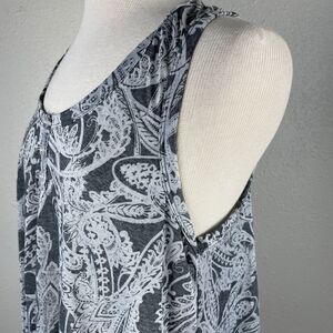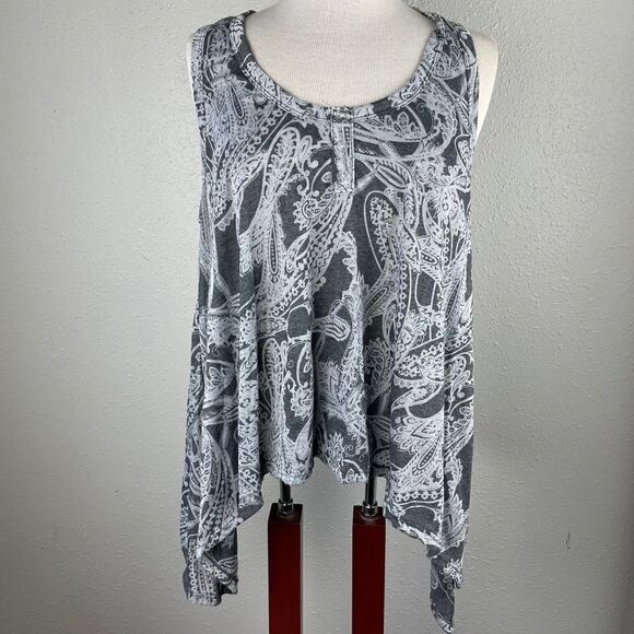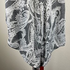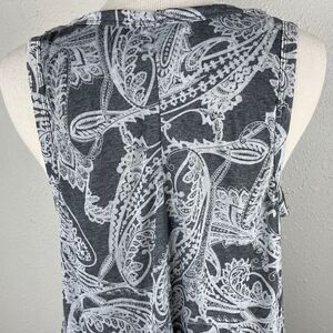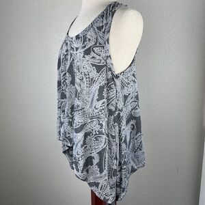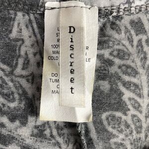 Super stylish and cute tank top from Discreet measuring 21 inches armpit to armpit, 24 inches to the shortest drape and 30 inches on the long drapes on the side. It is in excellent preowned condition.