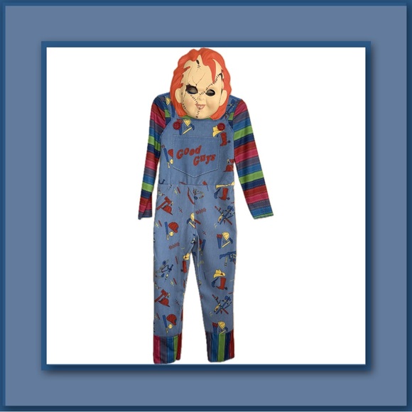 Get ready for a spooky Halloween with this officially licensed Disguise Chucky costume set. This 2-piece outfit includes a jumpsuit and character face mask, perfect for trick-or-treating, costume parties, or themed events.