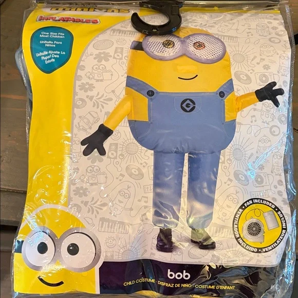 Fun Minion Bob costume for kids. Bright yellow and blue design. Includes gloves and goggles. Perfect for Halloween.