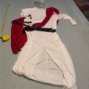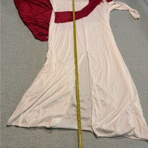 Classic Roman toga with bold red sash. Ideal for theater and themed events.