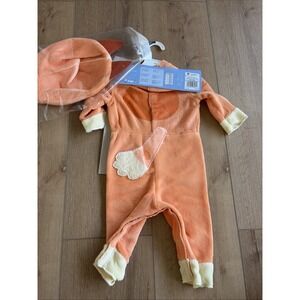 The Disguise Bluey Bingo Jumpsuit is a Halloween costume designed for toddlers aged 12 to 18 months. The bright orange color, complete outfit style, and polyester material make it a fun and comfortable option for young children to dress up in. The unisex gender design allows for both boys and girls to enjoy wearing the playful Bluey character outfit, perfect for Halloween or dress-up playtime.