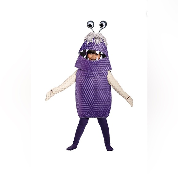 • FOSTER IMAGINATIVE PLAY: Halloween costumes provide endless opportunities for imaginative play, allowing toddlers and infants to step into different roles and spark their creativity.br • TRANSFORM INTO BELOVED CHARACTERS: Let your little ones become their favorite characters from movies, TV shows, or video games with costumes that bring these beloved characters to life, sparking their imagination and creating magical playtime adventures.br • ATTEND COMMUNITY EVENTS: Dress up your little ones in their Halloween costumes to attend community events like parades or festivals, bringing joy and adorable charm to the festivities.br br Product Description:br Perhaps you have your own curious, wide-eyed, pig-tailed tot that loves monsters? Our Boo costume from Pixar's Monster University movie will be her favorite outfit! Costume includes a white top that has white bumpy sleeves with attached mittens that have an opening to allow use of the hands. Over this you have a purple vest with a scale-like print, topped off with a matching headpiece with mop string hair and eyeballs on tall stalks! So creative and fun! Leggings and socks are not included. Made of 100% polyester. Spot clean with damp cloth, air dry. Toddler Medium fits sizes 3T-4T.