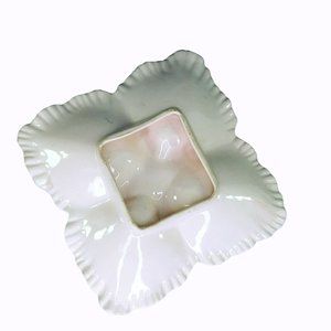 Dish Divided with Handle Pink Opalescent Gold Leaf Accents Collectible Vintage