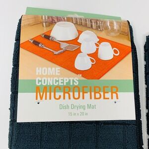Microfiber Dish Drying Mat 15" x 20" and Towels Set Black Cross Hatch Texture