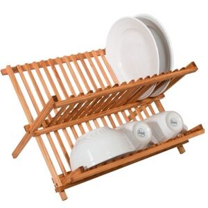 A unique rack features a minimalistic design and visually appealing With a warm brown finish that brings a flair to your countertops. Save time from drying dishes. Place damp dishware on this folding dish rack.