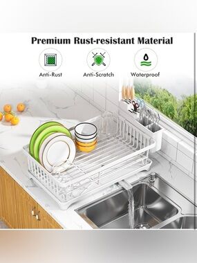 Dish Drying Rack - Space-Saving Small Dish Rack for Kitchen Counter, Rust-Resistant Kitchen Drying Rack, Compact Dish Drainer Organizer with Utensil Holder for Home Kitchen, White