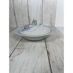 Dish & Lid Vintage 1978 Small Periwinkle Handpainted Trinkets