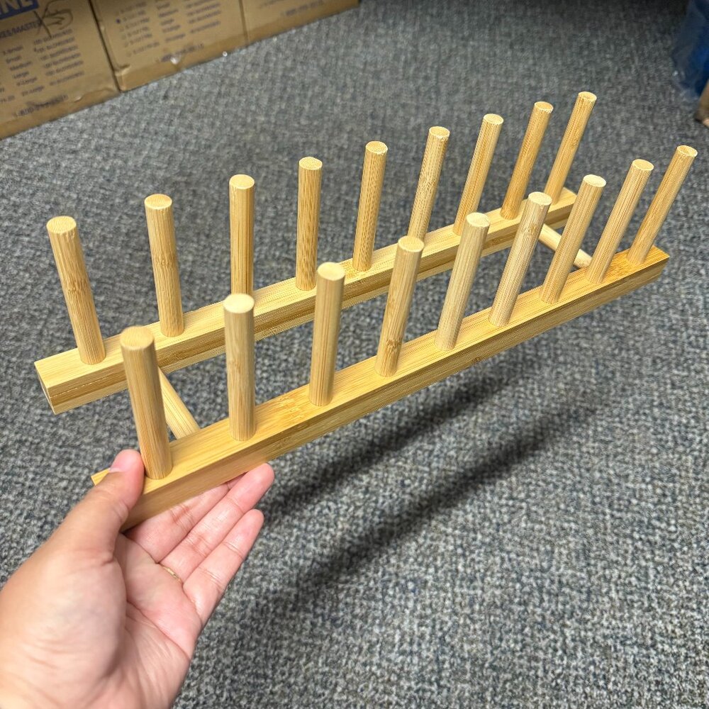 - Bamboo Dish Drying Rack - Hold up to 8 plates - Dimensions: 15.5 x 4 x 4