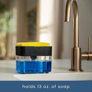 Dish Soap Dispenser Pump and Sponge Holder for Kitchen Sink, 13 Ounces (385ml)