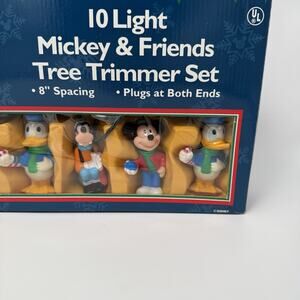 New, open box. Never used. Still look fantastic with no broken bulbs. This product is a vintage set of Disney 10 Light Christmas Tree String Lights featuring characters Mickey Mouse, Goofy, and Donald from the Mickey Mouse & Friends franchise. The lights are corded, made of plastic, and have a multicolor design, creating a novelty effect. Originally released in the 1980s, these original string lights are a nostalgic and charming addition to any holiday decor collection, especially for fans of Disney classics.