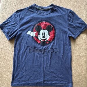 Celebrate Disney 100 with this stylish blue and red t-shirt. Features bold Disney logo.