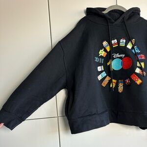 Disney 100 Embroidered Character Sweatshirt Hoodie Cropped Black Pockets Size 1X