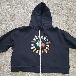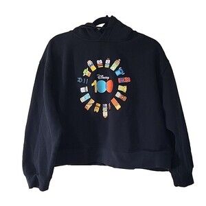 Disney 100 Friend Cropped Hoodie Womens XL Black Pullover Embroidered Characters