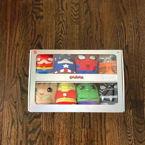 Details: Cutest and softest plush bundle for any Marvel lover!! 8-pack includes: 1) Captain America, 2) Spider-Man, 3) Groot, 4) Iron Man, 5) The Incredible Hulk, 6) Black Panther, 7) Captain Marvel, and 8) Rocket. Each measuring approx 5” in length, they look and feel just like Squishmallows (note it is not a Squishmallow brand). Detailing is wonderful for each character!