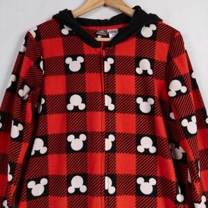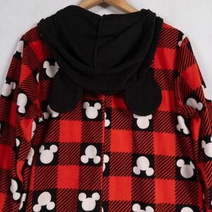Disney 100 Mickey Mouse Buffalo Plaid Fleece Hooded Union Suit Pajamas Sz Medium