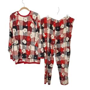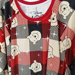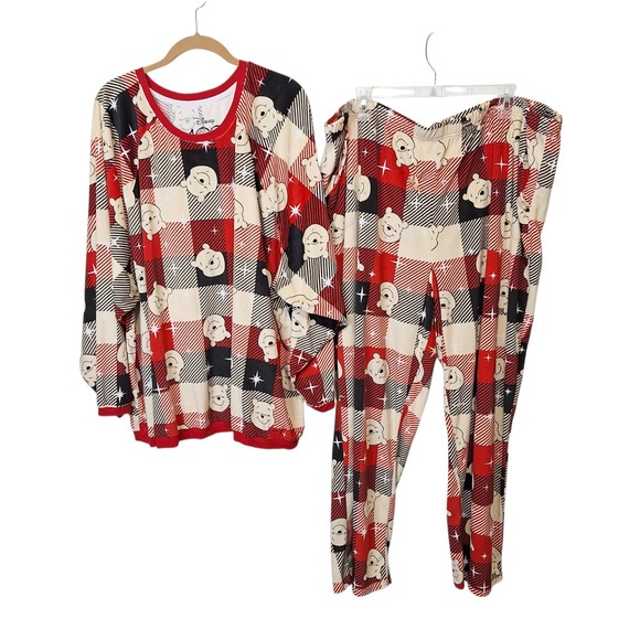 Disney 100 Womens 3X Pajama Set Winnie the Pooh Red Black Cream Check Fleece