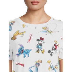 Material: 60% Cotton/40% Polyester • Care: Machine washable • Country of Origin: Imported • Size: Model is 5’10” and is wearing a size S • Fit: Relaxed • Neckline: Crewneck • Closure: Pullover style • Sleeves: Short • Pockets: None • Features: Allover Print; curved hem • ©Disney, All Rights Reserved •