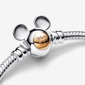 Make precious memories last forever with our Disney 100th Anniversary Moments Snake Chain Bracelet. Hand-finished in sterling silver, this limited edition collector’s piece features a Mickey Mouse-shaped clasp with a 14k gold circle engraved with “Disney 100”. Style it with your favourite Disney x Pandora charms to celebrate 100 years of wonder.