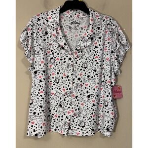 Disney 101 Dalmatians Pajama Set Women L (12-14) 2pc Top & Shorts Pajamas Dogs Hearts NEW
