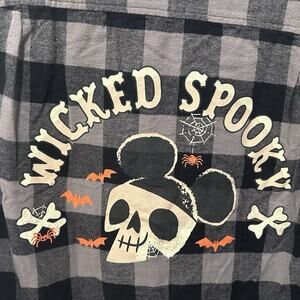 Disney 2021 Disneyland Halloween Trick Treat Gray Plaid Flannel Shirt Medium