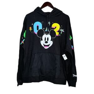 Disney 2024 Black Neon Disneyland Characters Mickey Mouse Pullover Hoodie NEW