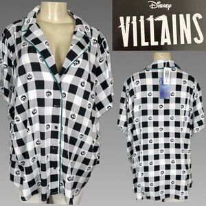 Disney +4 Black/White Button Retro Square Poison Apples Print Short Sleeve Shirt