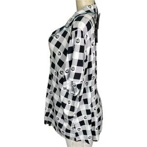 Disney +5 Black/White Button Retro Square Poison Apples Print Short Sleeve Shirt
