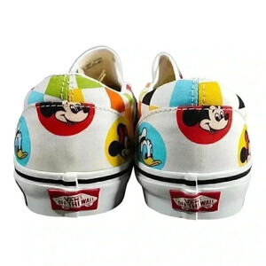Celebrate the 50th anniversary of Disney's beloved characters with these Vans slip-on shoes. The colorful Mickey & Friends pattern and logo accents make them a fun addition to any casual or activewear outfit. With a standard shoe width and rubber outsole, these sneakers provide both comfort and durability. Perfect for summer, fall, and spring occasions, these shoes are available in size 9 UK / 10 US / 43 EU. The slip-on closure and textile upper material ensure a comfortable fit. Made in Vietnam, these Vans Disney shoes are a must-have for any collector or fan.